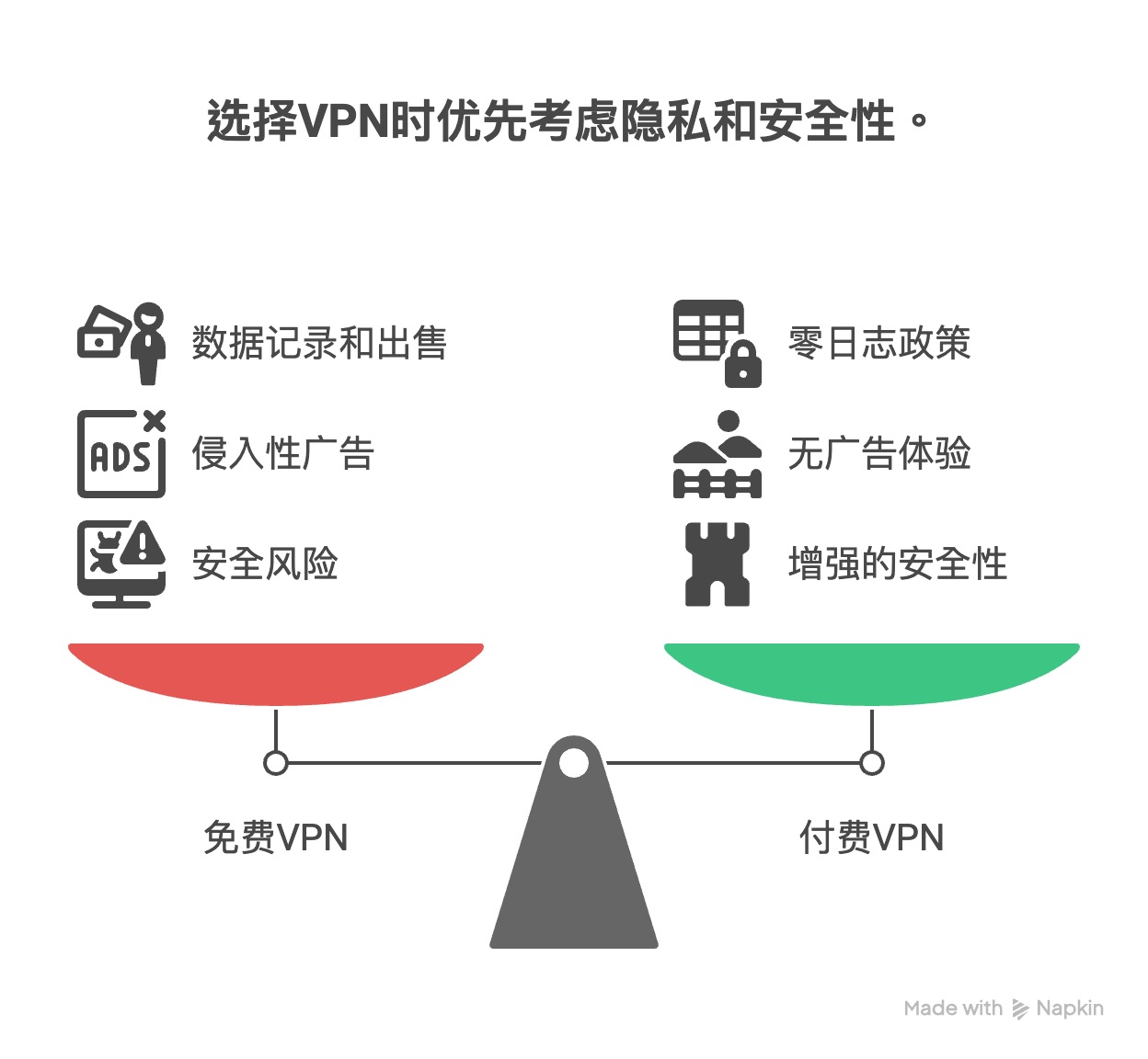 一个信誉良好的付费VPN,其商业模式是直接对用户负责。因为您付了费,他们才有动力和资源去投资最好的服务器、开发最强的加密技术,并严格执行保护您隐私的承诺(如零日志政策)。想了解更深入的对比,可以阅读我们关于付费VPN vs. 免费VPN的详细分析。